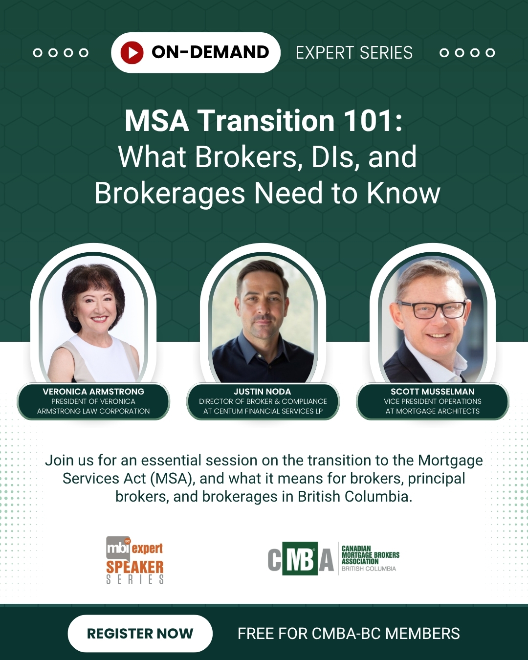Join us for an essential session on the transition to the Mortgage Services Act (MSA), and what it means for brokers, principal brokers, and brokerages in British Columbia.